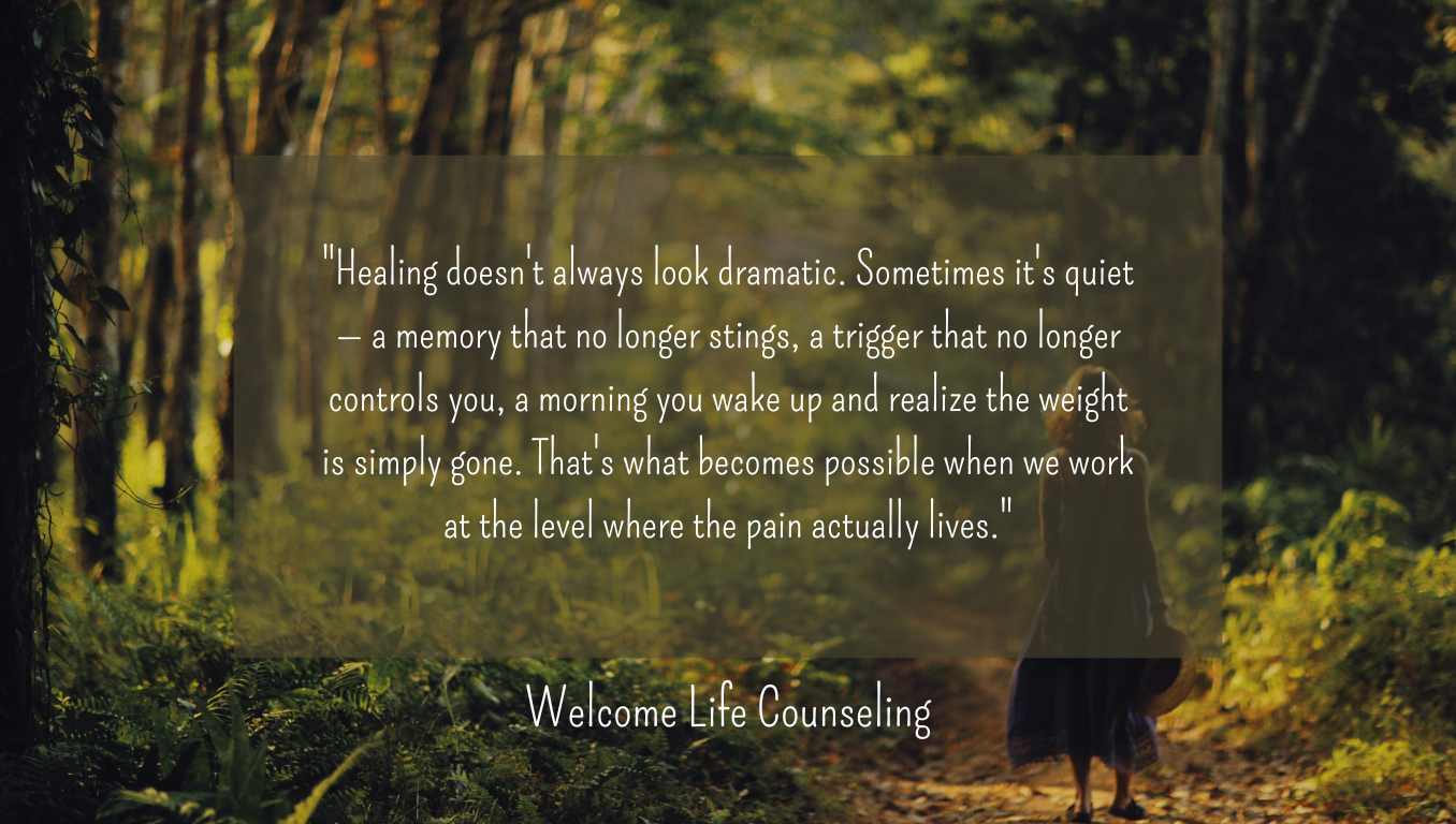 "Healing doesn't always look dramatic. Sometimes it's quiet — a memory that no longer stings, a trigger that no longer controls you, a morning you wake up and realize the weight is simply gone. That's what becomes possible when we work at the level where the pain actually lives."